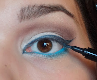 5. E o toque especial desta maquilhagem a utilização de um lápis azul turquesa na linha de água, que dá o toque único.